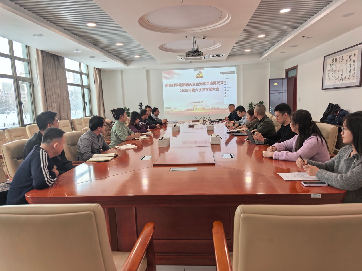 2025年12月11日,中国科学院新疆天文台光学与应用天文党支部召开全体党员大会,专题学习贯彻党的二十届四中全会精神。支部书记白春海主持会议,台党委委员、副台长韩伟到会指导。支部全体党员、发展对象及入党积极分子参加会议。