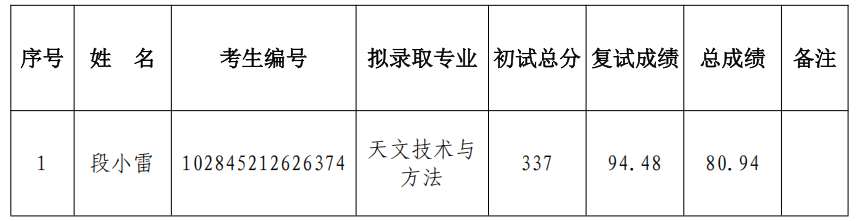 根据初试及复试情况,经台招生领导小组决定,2025年硕士研究生招生调剂志愿拟录取考生为: